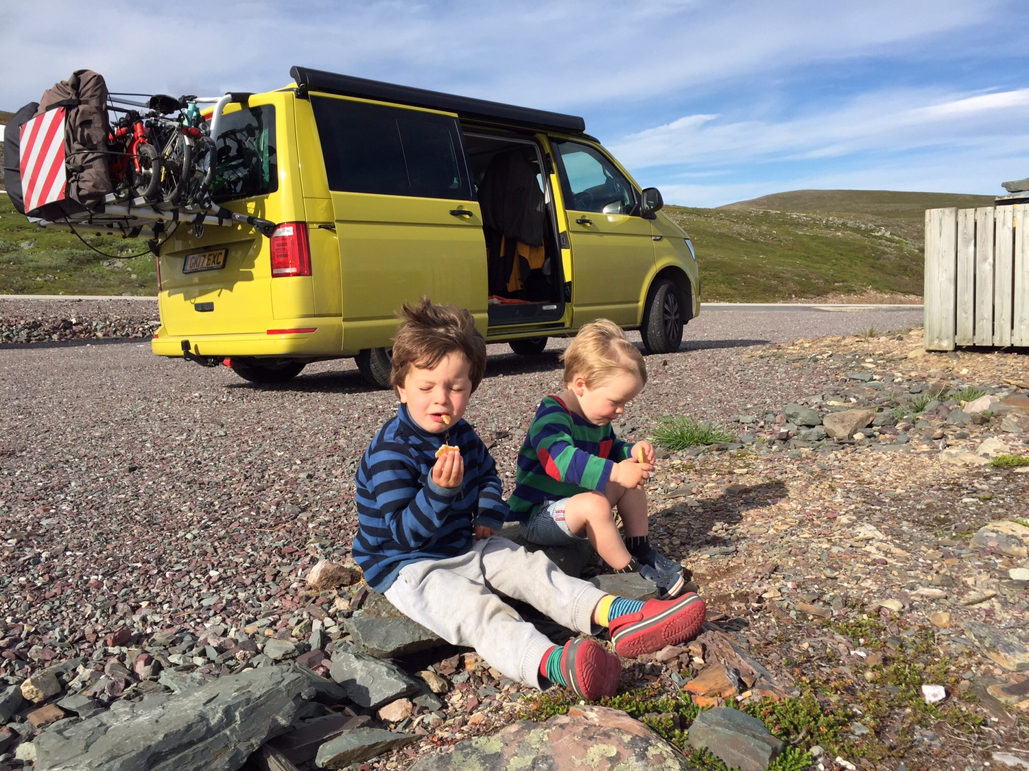 Vw t5 bike rack with roof spoiler.