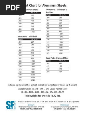 Aluminum Weight Chart Nature