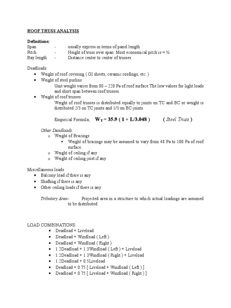 Steel Roof Truss Dead Load Live Load Wind Load Calculations Youtube
